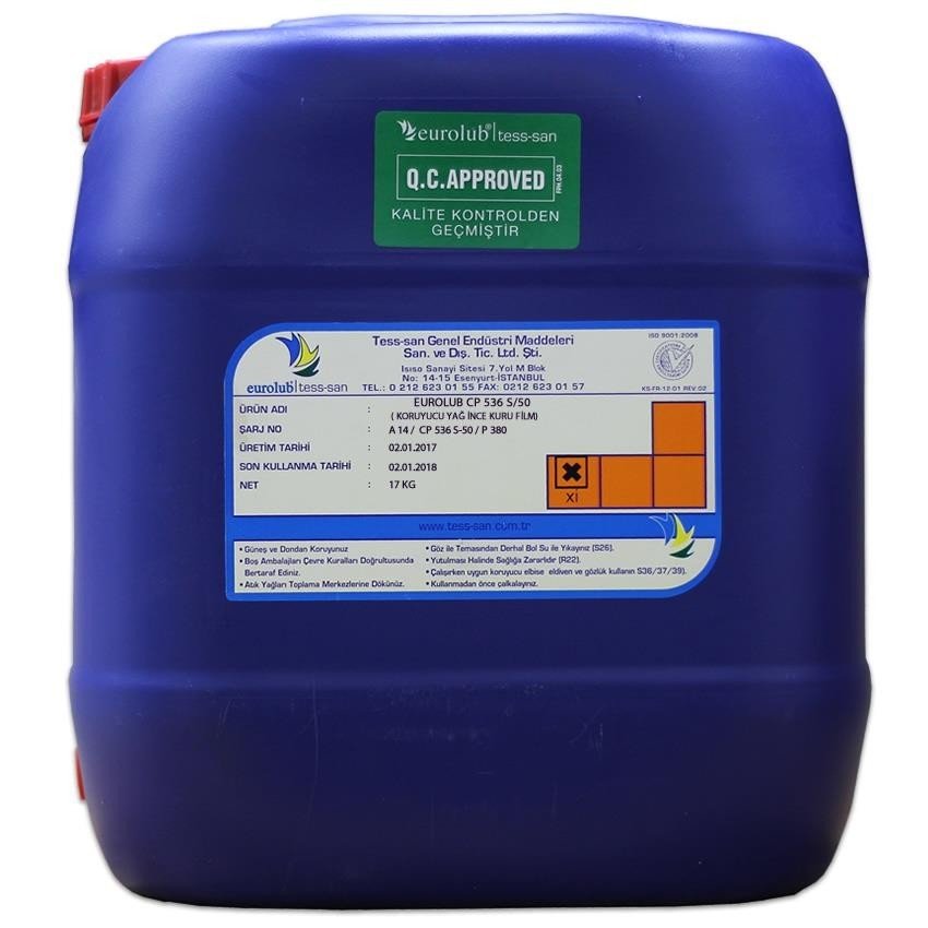 EUROLUB CP 536/S50, hidrokarbonlar ve film oluşturucu korozyon inhibitörleri (sodyum ve kalsiyum sülfonatları) kombinasyonundan oluşmuştur. Baryum içermez. Her türlü demir çelik ve kaplama malzemenin ara stoklanmasında veya taşınması sırasında hava su nem gibi ortam koşullarında oksitlenerek paslanmasını önleyen koruyucu yağdır. Ağır işletme koşullarına dayanıklıdır.