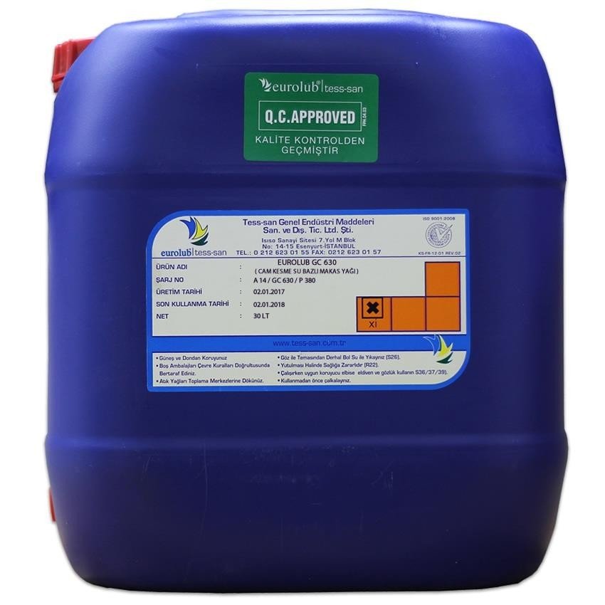 Eurolub GC 630, parafinik ve naftanik hidrokarbonlar kombinasyonu olan lubrikasyon özelliği yüksek cam kesme yağıdır. Cam kesme için kullanılan makaslar için özel olarak üretilmiş su bazlı uçuculuğu yüksek kesme sıvısıdır.