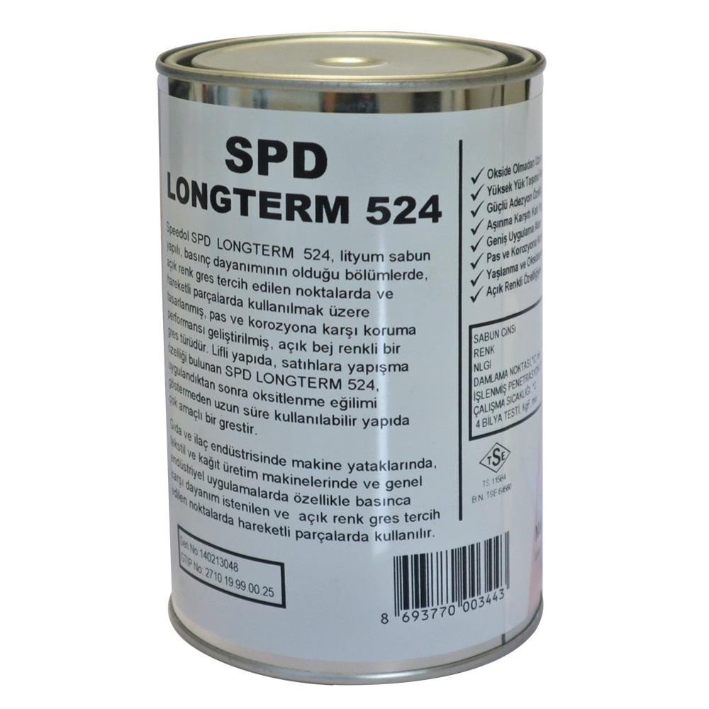 Speedol SPD LONGTERM 524, lityum sabun yapılı, basınç dayanımının olduğu bölümlerde, açık renk gres tercih edilen noktalarda ve hareketli parçalarda kullanılmak üzere tasarlanmış, pas ve korozyona karşı koruma performansı geliştirilmiş, açık bej renkli bir gres türüdür. Lifli yapıda, satıhlara yapışma özelliği bulunan SPD LONGTERM 524, uygulandıktan sonra oksitlenme eğilimi göstermeden uzun süre kullanılabilir yapıda çok amaçlı grestir.